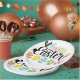 A Colorful Happy Easter Party Plates With A Cute Script Design Into A Rabbit With Eggs