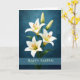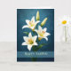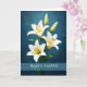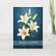 This elegant Easter design showcases graceful white lilies arranged against a rich blue background that adds depth and contrast to the delicate petals. The classic message Happy Easter makes this greeting suitable for a wide range of senders, from friends and family to neighbors or business associates. Easter lilies are widely recognized as one of the signature flowers of the season, symbolizing renewal and the beauty of spring. The refined floral composition and vibrant color palette create a welcoming card that captures the freshness and joy of Easter.