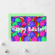 Osterkarte mit Happy Easter! und bunten Eiern. Wunschkarte für eine schöne Osterzeit für Familie und Freunde.