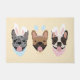 Niedliche Darstellung der französischen Bulldogs in Osterbekleidung mit Hasen und Ostereiern. Ideal für Hundeliebhaber und Begleiter zu Ostern.