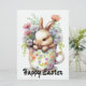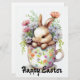 Happy Oaster Watercolor Holiday Card mit Bunny in einer Teetasse und Blume Freude verteilen, jubeln, alles fröhlich und immer glücklich! Weihnachtskarten, die das ganze Jahr aufhellen.