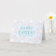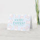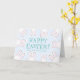 Happy Oaster aquamarine, weiße und blassblaue niedliche Hasen lustige moderne personalisiert Card. Anpassbarer aquamariner Text mit blass blauem Hintergrund