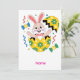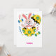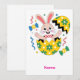 A super fun and festive illustration of a cute bunny with a bow tie popping out of a yellow floral egg, surrounded by colorful candies and confetti. This joyful design is perfect for kids' Easter party favors, laptop stickers, and festive magnets. Celebrate the holiday with a burst of color and sweetness!