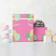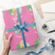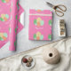 Niedliches und festes Packpapier mit farbenfrohen Osterei-Mustern und "Happy Oaster"-Text auf hellrosa.