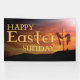 Happy Easter Sunday Design with Sunrise and Cross Banner