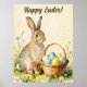 Happy Easter Vintage Bunny with Egg Basket Poster