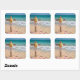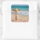 Happy Easter Wooden Cross with Lilies on Beach Quadratischer Aufkleber