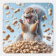 Ein fröhliches Eichhörnchen steht auf einem Haufen von Erdnüssen mit einem breiten Grin, umgeben von Erdnüssen, die um ihn fallen