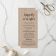 Herzlich willkommen in unserer Hochzeitstypografie, Elegant Modern Rustic Black Script, Brown Kraft, Wedding Ceremony Program card. Es ist mit Scrollakzent entworfen, der personalisiert werden kann mit benutzerdefiniertem/personalisiertem Text für Ihr Brautparty, Zeremonie Details, Gedenkhinweise und Dankeschön-Nachricht. Wenn Sie weitere Programmkarten-Typen und -Größen suchen, durchsuchen Sie bitte unseren passenden Programmkartenabfrageabschnitt.