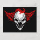 Ein glücklicher böser Clown mit leuchtend rotem Haar und einer schwarzen Nase.