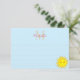 Sunshine in blue sky. Cute cartoon style drawing. Custom note cards with lines and monogram. Edit initial and name to customize.