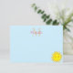 Sunshine in blue sky. Cute cartoon style drawing. Custom note cards with monogram. Edit initial and name to customize.