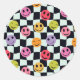 Das sind niedliche, fröhliche Gesichter auf einem schwarz-weißen Schachbrettmuster. Es ist ein lustiger niedlicher Rundaufkleber für Kindergeburtstage