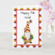 Niedlicher Cartoon Fall inspiriert gnome mit Herbstblättern fallen im Hintergrund Autumn Sessings card für Familie oder Freunde.