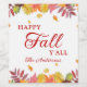 Verfügt über farbenfrohe Herbstblätter in Goldtönen, Bordeaux und Orange mit der Phrase "Happy Fall Y'all" in handgeschriebener Schrift-Typografie und personalisiert mit Ihrem Namen. Ideal für Partys oder Geschenke. Ein schönes Herbstdesign, das Ihnen von Cherry Lane Designs zur Verfügung gestellt wurde!