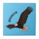 Dieser glückliche Glatzadler fliegt hoch am Himmel. Gezeichnet in lustiger Illustration Stil.