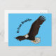 Dieser glückliche Glatzadler fliegt hoch am Himmel. Gezeichnet in lustiger Illustration Stil.