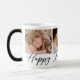 Modernes Geschenk für den Vatertag. Design mit 3 Fotos auf weißem Hintergrund und Kalligraphie-Skript ''Happy Vatertag''.