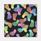 Illustration von vielen farbenfrohen Fußabdrücken mit fröhlichen lächelnden Gesichtern, die vor einem schwarzen Hintergrund herumstürzen. Bilder auf verschiedenen Geschenken und Produkten erhältlich.