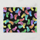 Illustration von vielen farbenfrohen Fußabdrücken mit fröhlichen lächelnden Gesichtern, die vor einem schwarzen Hintergrund herumstürzen. Bilder auf verschiedenen Geschenken und Produkten erhältlich.