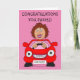 Cartoon einer glücklichen Fahrerin, kann ihr Name auf die Autokennzeichen gesetzt werden.