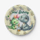 A Happy First Birthday Paper Plate With Number One Cupcake And Cute Baby Dinosaurs