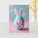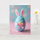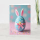 This design shows a sky-blue egg-shaped treat topped with tall bunny ears 🐰, set like a sweet centerpiece for a first Easter moment. Across the front of the egg, white uppercase text reads “HAPPY 1st EASTER,” centered and easy to spot against the blue. A glossy pink ribbon wraps around the middle and is tied into a neat bow, giving the egg a dressed-up look like it’s ready for a photo with someone special. Tucked into the bow is a small white flower with a sunny yellow center, adding a gentle, affectionate touch. The ears are white on the outside with bright pink inner panels, angled slightly inward as if leaning in close like a friendly nuzzle 🐇. Behind it, soft light washes over a blurred background of pink and blue circles, keeping the focus on the decorated centerpiece. Along the bottom, a blush-pink surface is sprinkled with tiny candy dots in pale blue, yellow, orange, and pink.