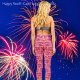 Kreative Bilder, entworfen diese, grafische Kunst, von dunkelblauem Text "Happy Fourth", angezeigt gegen eine, rot-weiß, gestreift, Fahne Muster mit marineblau, und weiße Sterne, verstreut.