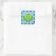 Niedlicher, blau karierter Aufkleber mit einem lächelnden, fröhlichen Frosch in der Mitte.
