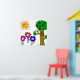 Glückliches Gartenposter für Kinder mit lächelnden Blume, Baum und Sonne.