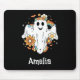 Mousepad mit einer Illustration eines lächelnden Geistes. Dekoriert mit Blume, Regenbogen und Fledermäusen.