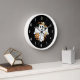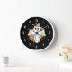 Eine Uhr mit einer Illustration eines lächelnden Geistes. Dekoriert mit Blume, Regenbogen und Fledermäusen.