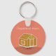 Schlüsselanhänger mit niedlichem Lebkuchencharakter. Das Lebkuchenhaus lächelt, wie es steht, ist mit weißem Zuckerguss und grünen Bonbons dekoriert. Die Worte "Gingerbread House" erscheinen darüber und können angepasst werden.