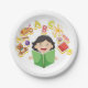 Ein glückliches Mädchen, das ein Buch liest und lacht. Dieses Design wirkt auf diese Paper-Teller sehr effektiv