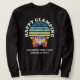 Stilvolle Happy Camper, HAPPY GLAMPING Individuelle Name Family Camping Trip Sweatshirt mit CUSTOMIZABLE TEXT, mit Vorführung von Bergen, Waldbäumen und Wohnmobil, mit einem Vintagen Sonnenuntergang im Hintergrund. Der gebogene Text liest HAPPY GLAMPING in fett formatiertem Text. Der untere Text lautet [FAMILIENNAME UND JAHR] CAMPING IN STIL. ALLE TEXTE SIND KUNDENBAR, sodass Sie mit Ihrer bevorzugten Formulierung personalisieren oder Ihren Familiennamen hinzufügen können. Kaufen Sie für die ganze Familie und personalisieren Sie mit ihren individuellen Namen. Dieses familienfreundliche Camping Sweatshirt eignet sich ideal für einen Familienurlaub, ein Van Life, ein sommerliches Outdoor-Party oder für diejenigen, die sich auf der Suche nach einem einfacheren Flirt-Leben auf der Straße sind. Matching Geschenke verfügbar.