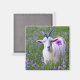 Dieser Magnet zeichnet sich durch eine süße, glückliche Ziege in einem Feld von Wildblumen aus.
