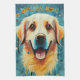 Diese glückliche Golden Retriever Illustration ist ein großartiges Design für Hundefreunde und Golden Retriever Besitzer. Es hat eine blau-grüne Hintergrundfarbe und Anzug zu den meisten Farbkombinationen.