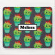 Personalisiertes Mousepad mit sich wiederholenden Mustern. Eine niedliche Abbildung eines plumpen runden Kaktus, mit großen kawaii Augen, lächelnd und mit einem roten Sombrero. Stehend in einem Blume Topf. Der Hintergrund ist ein schwarzes Chalkboard-Bild.