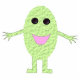 Diese Fotoskulptur zeigt einen Cartoon einer grünen Traube mit glänzenden schwarzen Augen und einem rosa Mund.