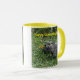 Photo of a groundhog in the grass, is printed on both sides of custom mugs. The text says, Happy Groundhog Day, and is written in yellow. The text can be customized with your own message' be sure to customize both sides. Thank you for shopping at CherylsArtPhotos on Zazzle.