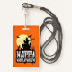 Gute Halloween Textil-Illustration mit Spuk Haus-, Friedhof- und Fledermausdekoration auf grunge-orangefarbenem Hintergrund.