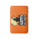 Gute Halloween Textil-Illustration mit Spuk Haus-, Friedhof- und Fledermausdekoration auf grunge-orangefarbenem Hintergrund.