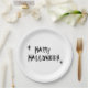 Frohe Halloween Schwarz-Weiß beängstigende spooky Typografie Spaß Halloween-Party Papier Teller. Schwarze beängstigende Typografie, weißer Hintergrund, in vielen Farben und Stilvarianten erhältlich.