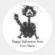 Die Cartoon-Katze auf diesen lustigen personalisierten Halloween-Aufklebern ist schwarz mit grauen Streifen. Es springt in die Luft und sieht verängstigt aus. Der Aufkleber lautet: "Happy Halloween von deinem Namen." Die Vorlage ist im Set, sodass Sie den Namen und/oder die Beispielwörter einfach durch Ihre eigenen ersetzen können. Benutzen Sie diese als Etiketten für Ihre Goodies-Taschen oder hausgemachte Leckereien.