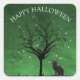 Happy Halloween Black Cat Twinkling Star Tree Quadratischer Aufkleber