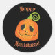 Happy Halloween Black Whimsical Pumpkin Lächeln Runder Aufkleber