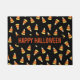 Trick oder geil! Festliche Türmatte mit einem Allover-Süßmaisprint in Wirblen Aquarellfarben auf einem schwarzen Hintergrund mit "Happy Halloween" in festlich orangefarbenem Text. Koordination der Artikel in unserem Shop!