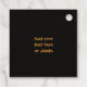 Zu Halloween gibt es einen lustigen Kürbis, Fledermäuse, Spinnen und Vollmond im Hintergrund. Anpassbarer Text auf der Rückseite in passender orangefarbener Farbe auf schwarzem Hintergrund.