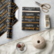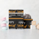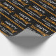Cooles Schwarz-Orange Happy Halloween Packpapier mit Ihrem eigenen personalisierten Text in Not Schriftart. Die sprichwörtlichen orangefarbenen Buchstaben rollen um eine Kürbislaterne in der Mitte des Wortes.