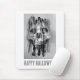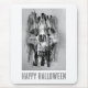 Happy Halloween text can be customized by you. Distressed human skull photo. Black and white.